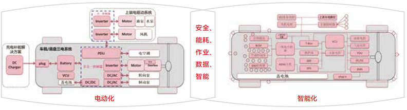 通過底盤與上裝的一體化設(shè)計,中控屏集成了車輛駕駛、上裝作業(yè)和多媒體娛樂等多功能,實現(xiàn)了“一屏多用”,簡化了架構(gòu),減少了60%的部件和線束,從而提高了性價比和可靠性