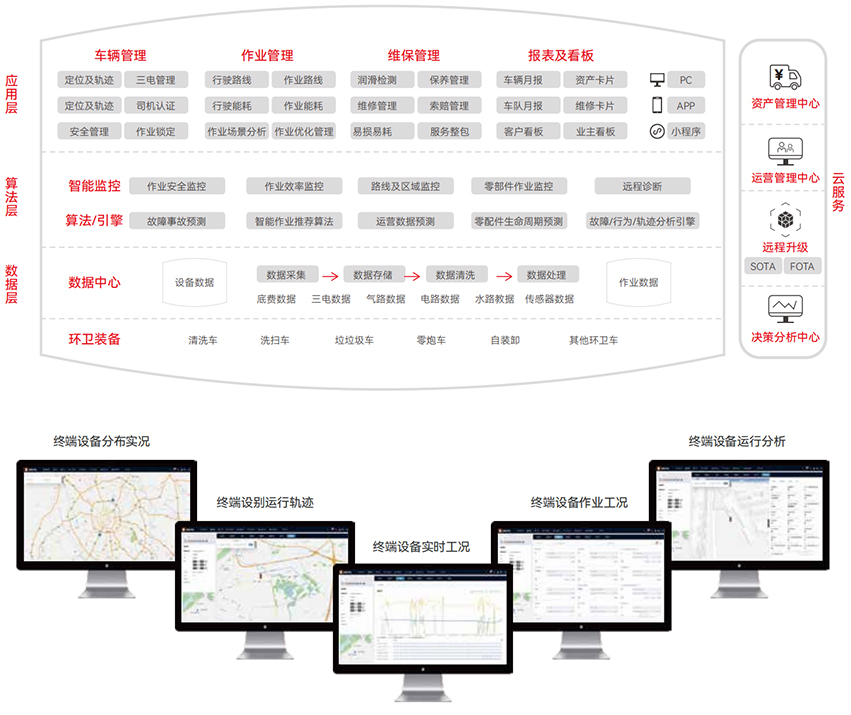 實現(xiàn)了車輛數(shù)據(jù)的全面互通和全車OTA能力,通過底盤和上裝的協(xié)同控制,精確采集作業(yè)數(shù)據(jù),推進車輛作業(yè)和平臺監(jiān)控的數(shù)字化精細化管理