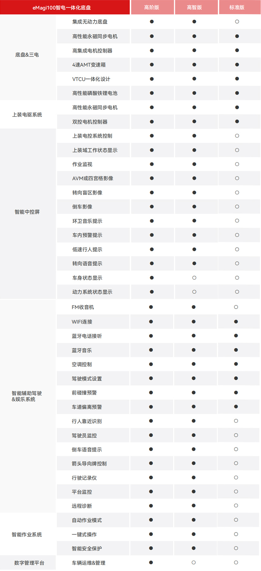 提供包含標(biāo)準(zhǔn)底盤和可選上裝的完整方案包,包括控制模塊、電機、電機控制器及其硬件和軟件解決方案。這一整合式方案便于用戶輕松完成電動化轉(zhuǎn)型,無需擔(dān)心兼容性和集成問題。