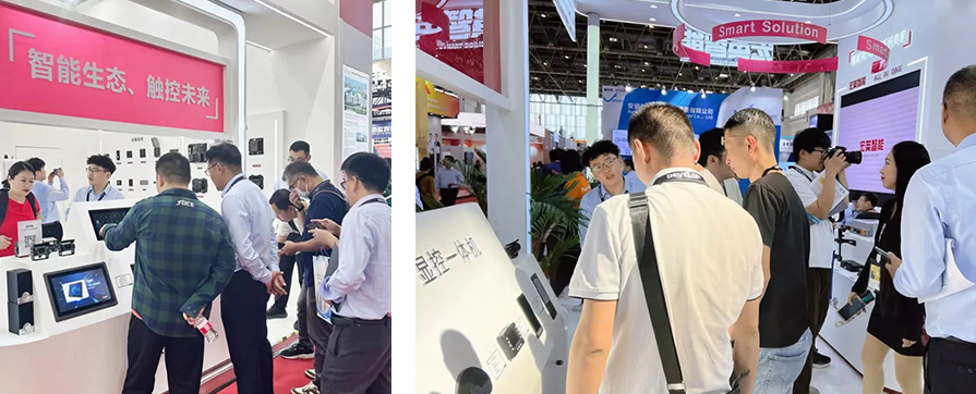 此外最為搶眼的還得數(shù)人機(jī)交互區(qū)域,最新的智能座艙系列產(chǎn)品、顯控一體機(jī)等設(shè)備,吸引眾多客戶(hù)駐足體驗(yàn)互動(dòng),設(shè)備不僅可實(shí)現(xiàn)上電即用,并且環(huán)境可靠性高,適用于各種惡劣環(huán)境,再配合智能按鍵面板以及電源管理模塊,可拓展更多用戶(hù)自定義功能,為客戶(hù)量身打造多元化的智能座艙場(chǎng)景。